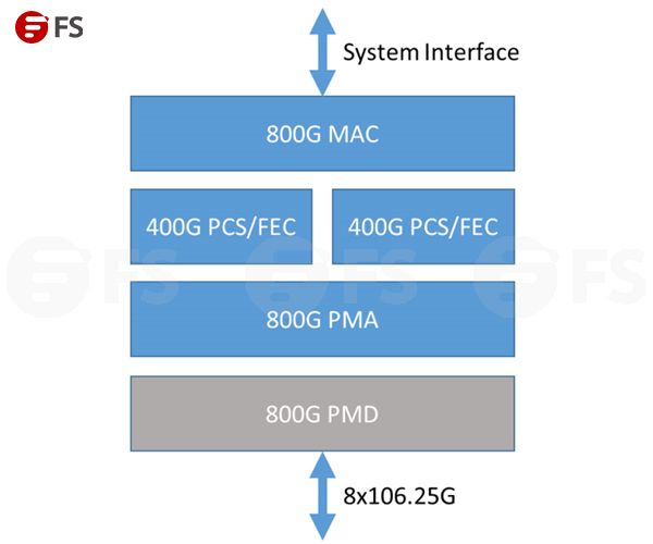 目前,IEEE(電氣和電子工程師協(xié)會(huì))還沒有制定800G以太網(wǎng)的標(biāo)準(zhǔn),但25G以太網(wǎng)聯(lián)盟(現(xiàn)更名為以太網(wǎng)技術(shù)聯(lián)盟(ETC))已經(jīng)在2020年4月制定了用于800G以太網(wǎng)的800GBASE-R規(guī)范。ETC宣稱該規(guī)范盡可能地利用400GbE的標(biāo)準(zhǔn)來建立一個(gè)800GbE MAC(媒體訪問控制)和PCS(物理編碼子層)規(guī)范,并降低用戶可以在以太網(wǎng)端口上實(shí)現(xiàn)多速率的成本。800GBASE-R規(guī)范采用的仍然是400G以太網(wǎng)中現(xiàn)有的106.25G通道,目的是將PCS的總通道數(shù)增加一倍(也就是從4條增加到8條)。從字面上看像是一個(gè)非常簡(jiǎn)單的概念變化,但是要想以這種方式將新增的通道綁在一起,是需要大量的人力、物力和財(cái)力的。